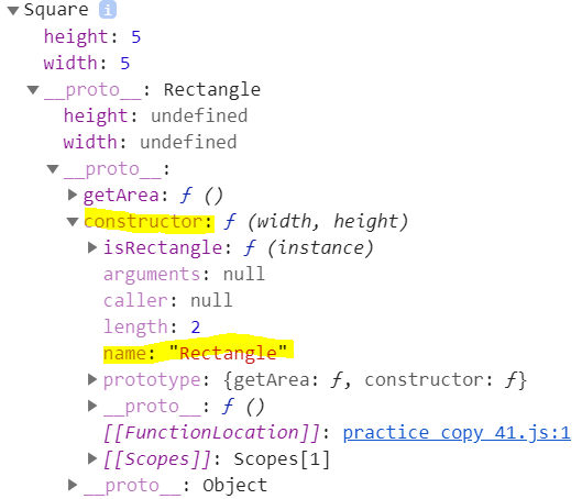 더 나아가 Square의 인스턴스인 squareInstance.contructor가 Rectangle을 가리키고 있는 것도 문제입니다. Square의 인스턴스의 constructor는 Square를 가리키도록 해야 합니다.
