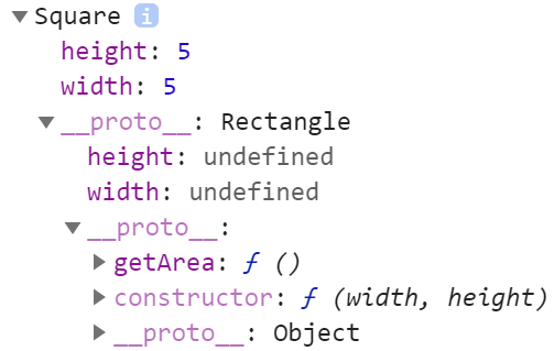 3번째 줄은 Square.__proto__가 Rectangle의 인스턴스라는 뜻입니다. height와 width에 undefined가 할당되어 있습니다.