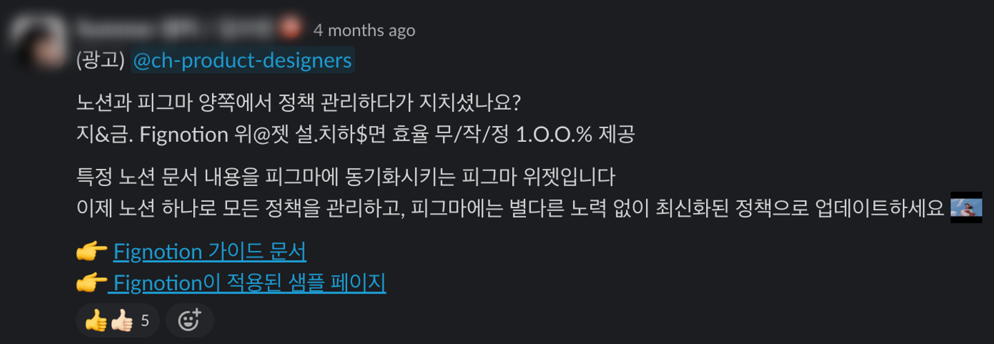 이 글을 읽으신 여러분 중에도 비슷한 문제를 경험하신 분들이 계실 거예요. 여러분의 조직은 이러한 문제를 어떻게 해결하셨나요? 귀중한 경험과 아이디어를 공유해 주시면, 함께 성장하는 데 큰 도움이 될 것 같습니다. 또한 FigNotion에 대한 여러분의 생각이나 제안도 궁금합니다!