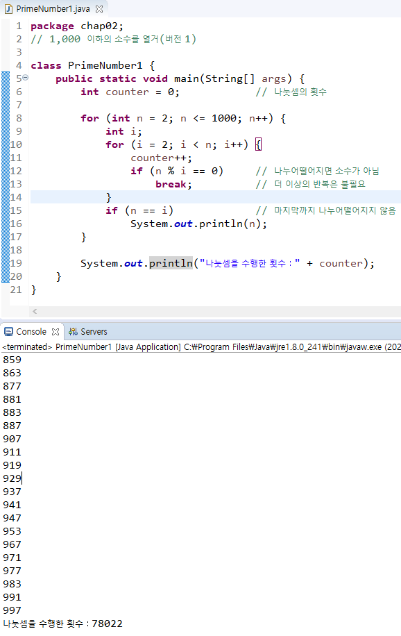 System.out.println("나눗셈을 수행한 횟수:" + counter);