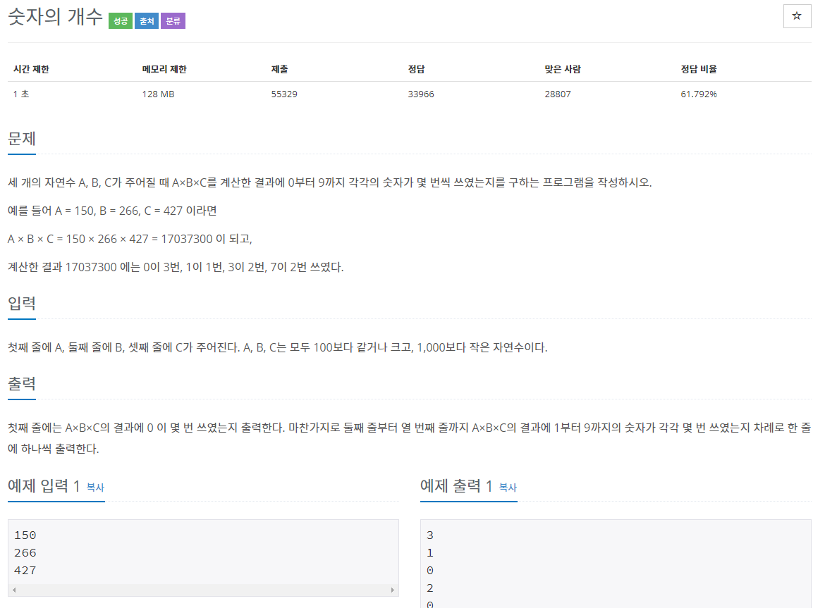 문제 ( https://www.acmicpc.net/problem/2577 )